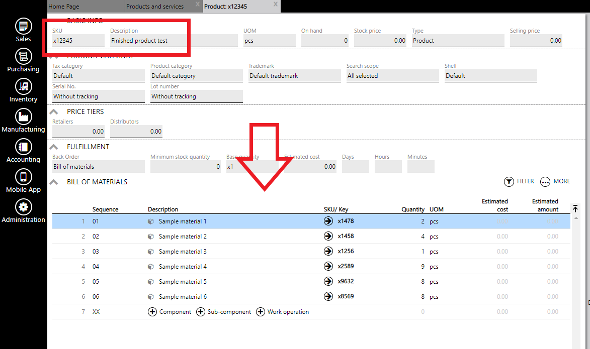 From here, just save the document and the system will import the product, along with its bill of materials.
